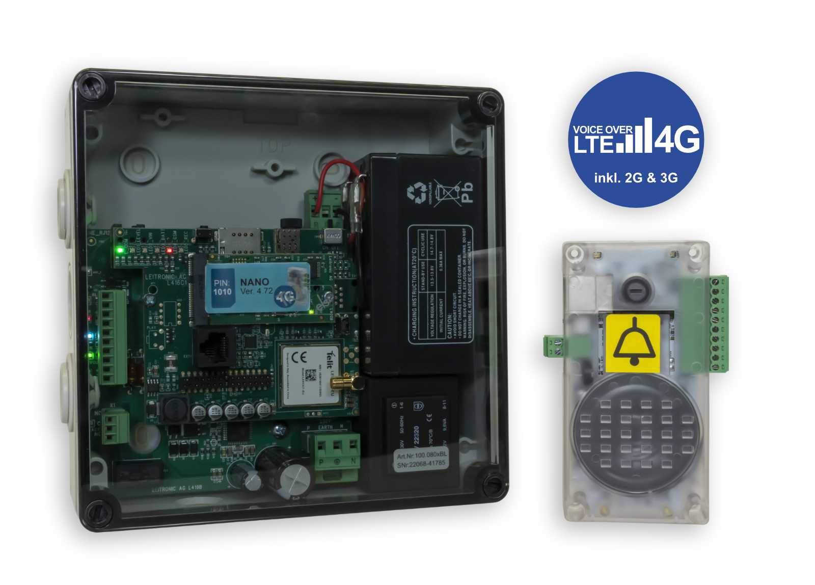 Unser System Nano ist der moderne Nachfolger des erfolgreichen EasyAlarms. Mit der Abschaltung des Telefonnetzes ist die Nutzung des Mobilfunks beim Aufzugsnotruf zum Standart geworden. Das System Nano bietet die Kombination aller sich daraus ergebenden Vorteile: Anschluss der Sprechstelle nur 2-polig; Schnelle Konfiguration per SMS (generiert von der App, dem Leitronic-Portal, oder als QR-Code); Montage der Empfangsbox im Schachtkopf für besten Empfang; Nutzung des mobilen Internets für die Aufzugssteuerung.