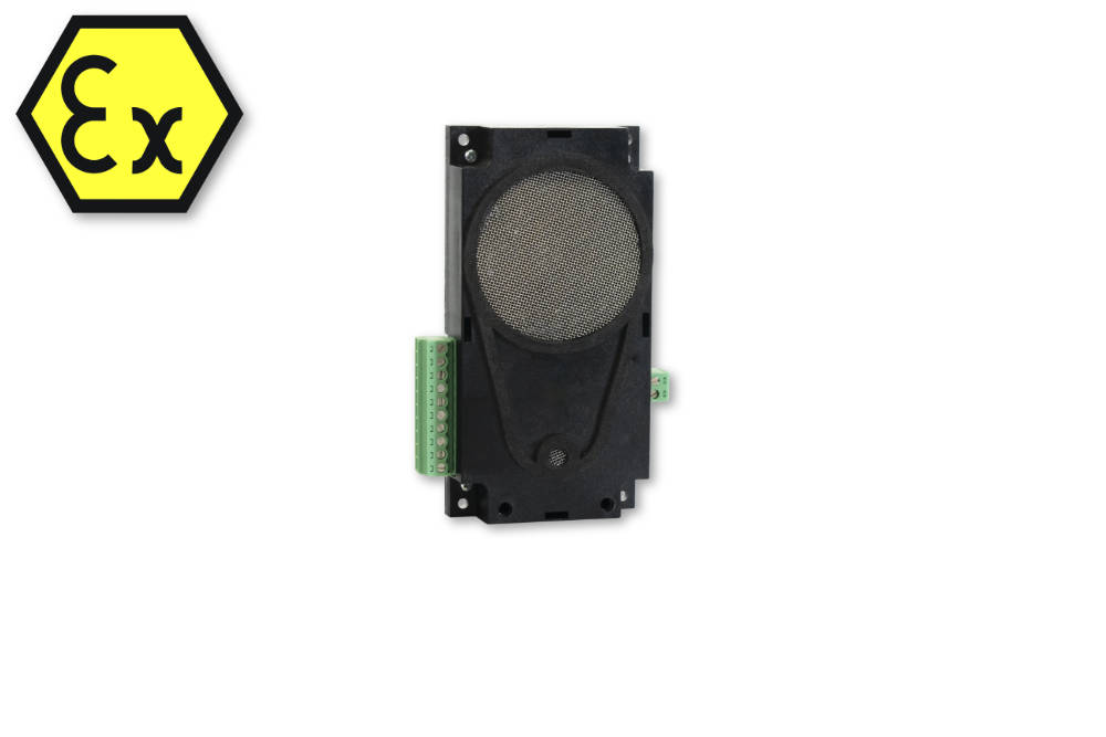Die Neben-Sprechstelle LMK70-ATEX ermöglicht die Alarmauslösung über eine externe Notruftaste und folgender Freisprechverbindung.