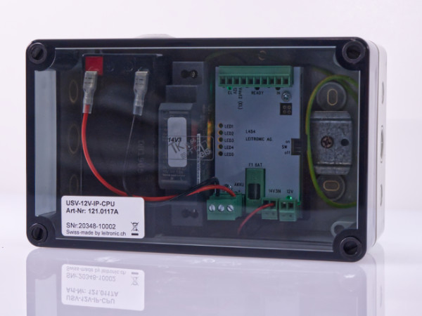 Ausgang: dauerhaft 12 V DC 500 mA für ein Exicall EN70 / geschaltete 12 V DC 300 mA für Notlicht